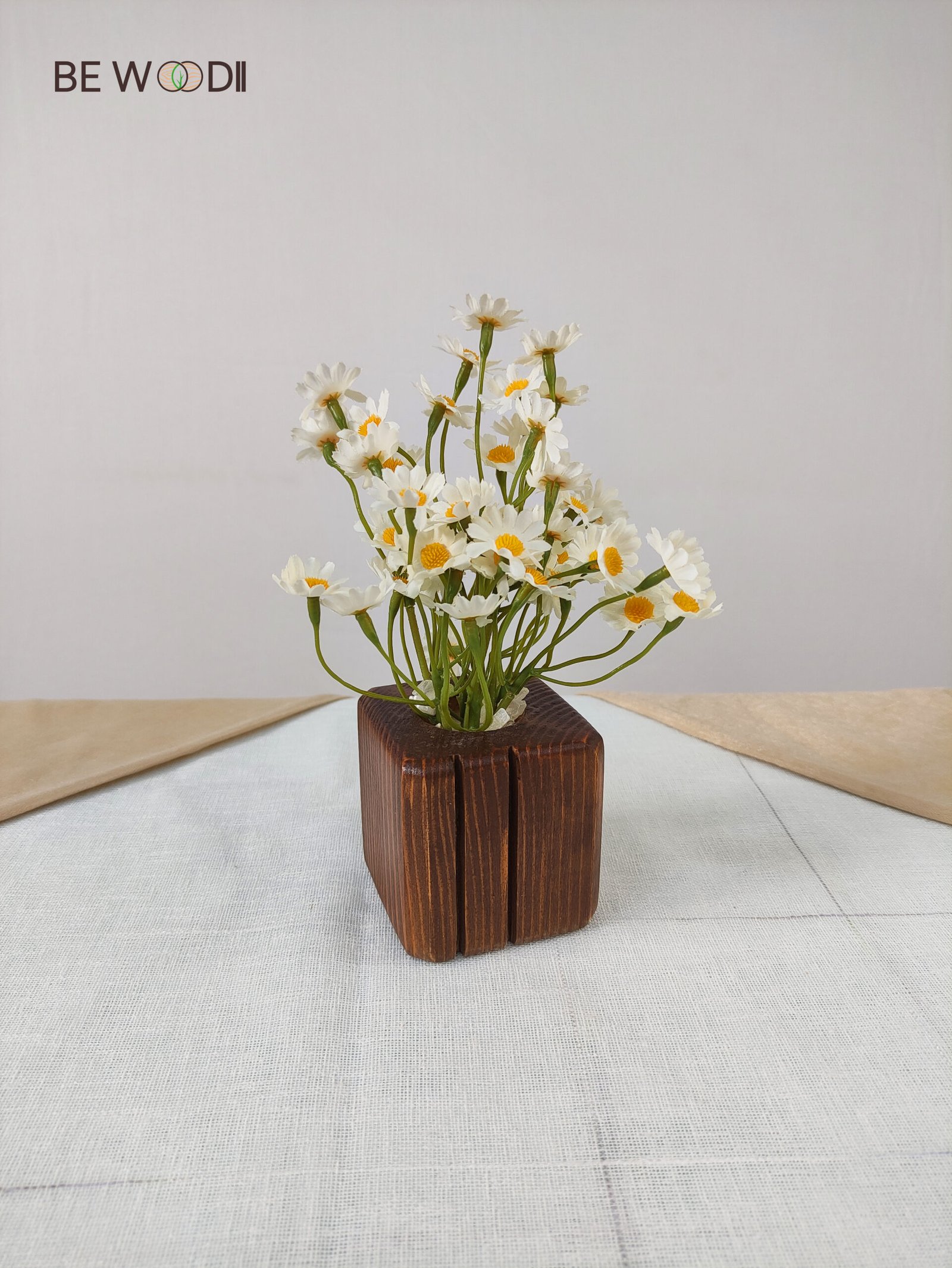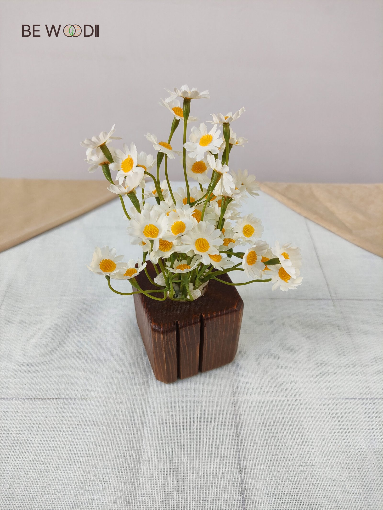 Add a touch of cheerful simplicity to your decor with this artificial white daisy arrangement, crafted to capture the charm and freshness of real daisies. Featuring delicate white petals with bright yellow centers and soft green stems, this arrangement is beautifully paired with a handcrafted dark wooden pot for a warm, rustic finish.