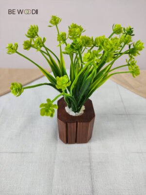 • 🪵 Handcrafted wooden pot with natural wood grain
