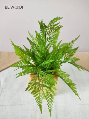 Bring a lively touch of greenery to your home or office with this artificial asparagus fern plant, designed to mimic the airy, delicate beauty of real fern foliage. Featuring finely textured green leaves that add natural depth and freshness, this arrangement is set in a handcrafted natural wooden pot for a clean, rustic finish.