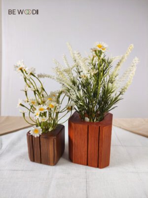 • 🪵 Handcrafted wooden pot with natural wood grain